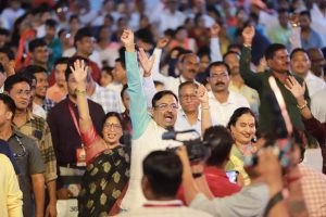 चंद्रपूर, दि.25 : ‘मेरी माटी, मेरा देश’ या उपक्रमांतर्गत राज्याचे सांस्कृतिक कार्य मंत्री तथा जिल्ह्याचे पालकमंत्री सुधीर मुनगंटीवार यांच्या संकल्पनेतून चंद्रपुरात ‘साद सह्याद्रीची…भुमी महाराष्ट्राची’ या सांस्कृतिक कार्यक्रमाचे भव्यदिव्य आयोजन करण्यात आले होते. चंद्रपूरकरांनी उत्साहपूर्ण वातावरणात देशभक्तीचा जागर करत या कार्यक्रमाचे तोंडभरून कौतुक केले व डोळ्याचे पारणे फिटल्याची भावना व्यक्त केली.