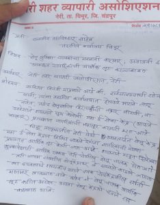 “नेरी शहर व्यापारी असोसिएशन,नेरी तर्फे चिमूर तहसीलदार यांना दिले निवेदन”