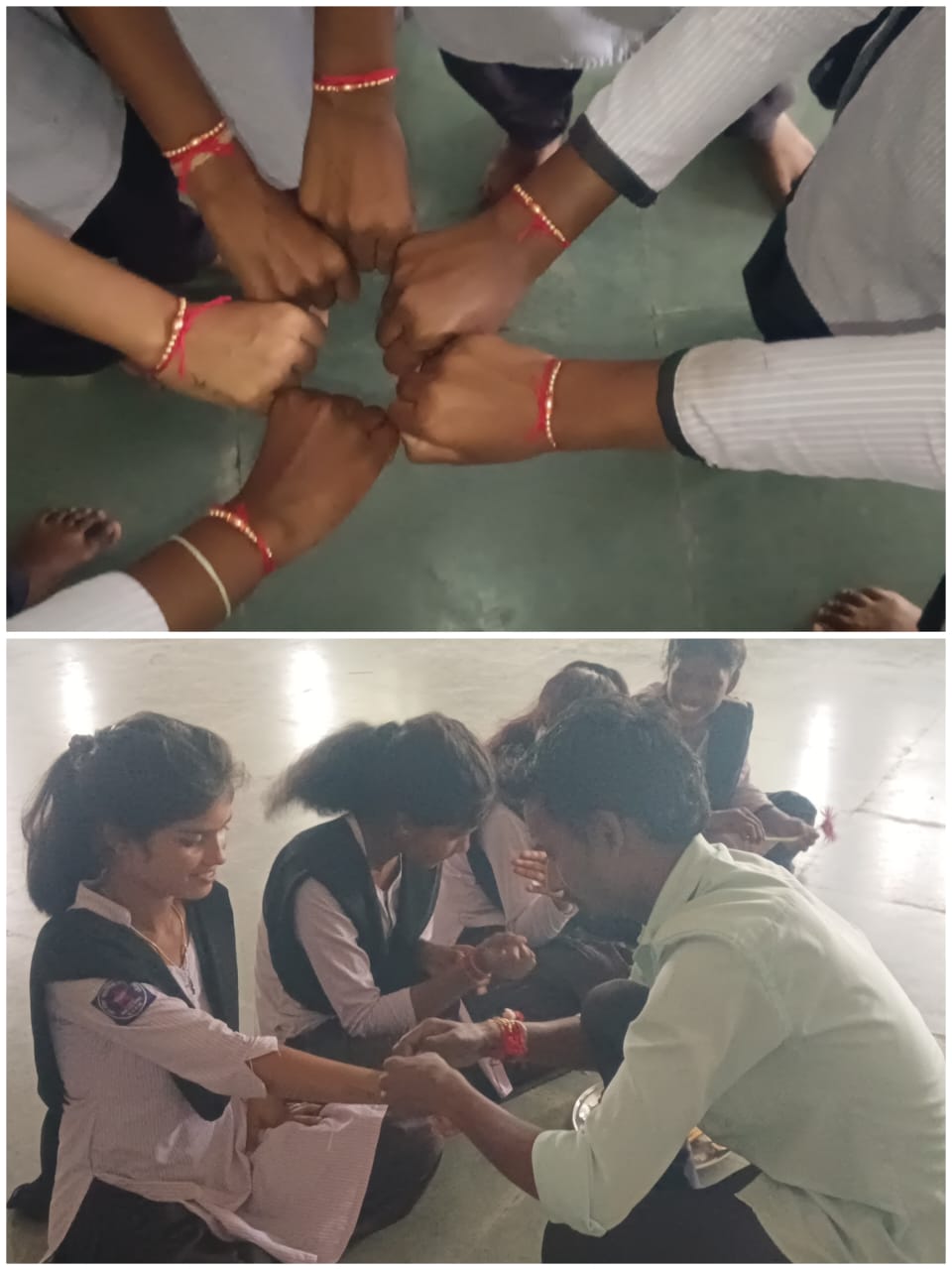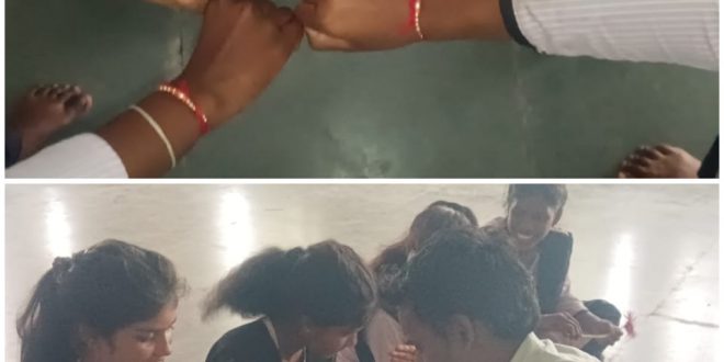 चिमूर:-ग्रामगीता महाविद्यालय चिमूर व चरित्र नाट्य अकादमी चिमूर यांच्या संयुक्त विद्यमाने रक्षाबंधन सणानिमित्ताने एक आगळावेगळा उपक्रम राबविण्यात आला यामध्ये प्रशिक्षक भावाने बांधली प्रशिक्षण घेणाऱ्या बहिणीना राखी बांधत वर्षानुवर्ष सुरू असलेले परंपरेला छेद देत नवीन पायंडा रोवला आहे. रक्षाबंधन हा भाऊ बहिणीच्या नात्याचा प्रसिद्ध सण आहे रक्षा म्हणजे संरक्षण आणि बंधन म्हणजे नात्याचे बंधन राखी सामान्यात बहीण भावाला बांधतात. रक्षाबंधनाच्या दिवशी बहीण आपल्याला भावाच्या प्रगतीसाठी मनोकामना व्यक्त करते आणि भाऊ आपल्या बहिणीच्या संरक्षण करण्याचे वचन देतो भाऊ आपल्या बहिणींना काही भेटवस्तू देतो भारतीय परंपरेनुसार अशा पद्धतीने हा सण साजरा केला जातो परंतु ग्रामगीता महाविद्यालय चिमूर व चरित्र नाट्य अकादमी चिमूर चे प्रशिक्षक सचिन भरडे यांच्या संकल्पनेतून एक वेगळा उपक्रम राबविण्यात आला.