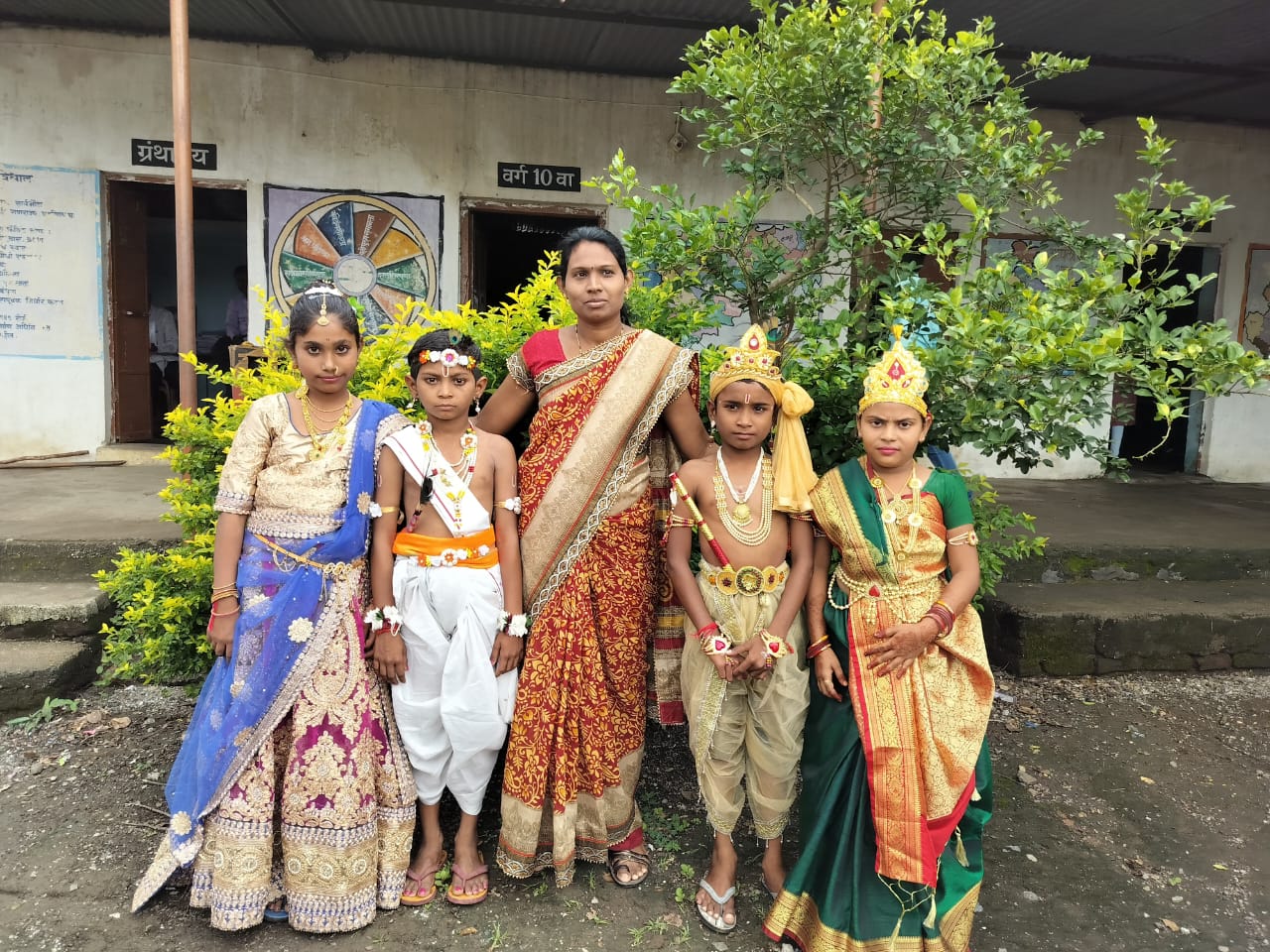 यवतमाळ/राळेगाव:-श्रीकृष्ण जन्माष्टमी निमित्ताने सोनामाता हायस्कूल चहांद येथे दहीहंडी सोहळा मोठ्या उत्साहात पार पडला.या कार्यक्रमासाठी वर्ग 5 चे विद्यार्थी सोहम कोल्हे, वेदांत मांडवकर यांनी श्रीकृष्णाची तर श्रावणी महाजन, वैष्णवी मांडवकर यांनी राधेची अतिशय सुंदर अशी वेशभूषा केली होती. श्रीकृष्ण जन्माष्टमी निमित्त शाळेत वर्ग पाच ते दहाच्या विद्यार्थ्यांनी श्रीकृष्णाच्या गाण्यावर अतिशय अप्रतिम असे नृत्य सादर केले सादर केले. त्यानंतर सर्व विद्यार्थ्यांनी व शिक्षकांनी श्रीकृष्णाच्या गाण्यांवर ताल धरला. या कार्यक्रमात सर्वत्र उत्साहाचे वातावरण होते.