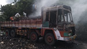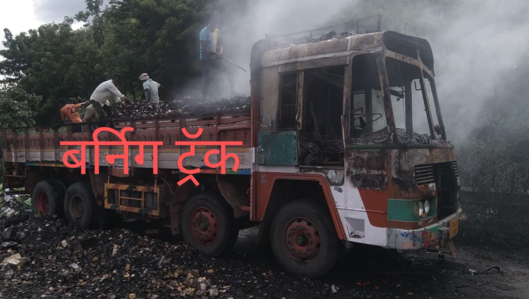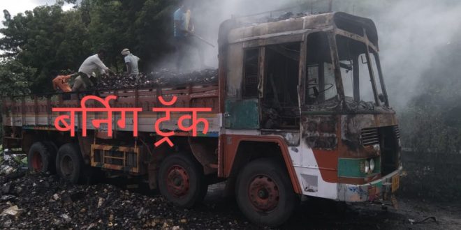 माचिसचे गठ्ठे घेऊन जाणारा भरधाव ट्रक पेटला