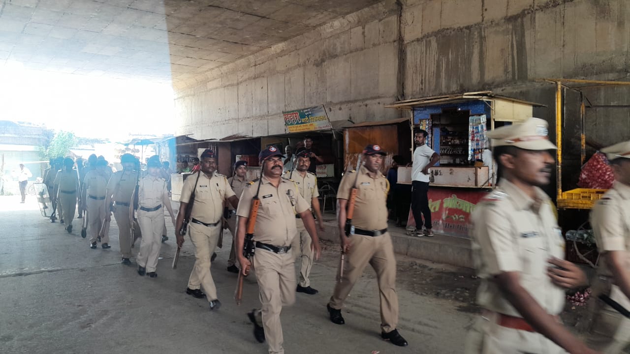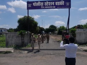 यवतमाळ:-यवतमाळ जिल्यातील राळेगाव तालुका अंतर्गत येत असलेल्या वडकी पोलिस स्टे. च्या सर्व कर्मचाऱ्यांनी गणेश उत्सव व ईद ए मिलाद या सणाच्या पार्श्वभूमीवर पो. स्टे. ठाणेदार विजय महाले व दुय्यम ठाणेदार प्रशांत जाधव यांच्या नेतृत्वात आज वडकी येथील प्रमुख मार्गांवरून व गावातील मुख्य वसाहतीतून मार्गक्रमण करीत गावातील जनतेला सामाजिक सालोख्यात बाधा येणार नाही व मागेपुढे गणेश उत्सव व ईद ए मिलाद सण आहे त्या मध्ये शांतता भंग होणार नाही याची काळजी नागरिकांनी घ्यावी व शासनाच्या नियम व अटीचे पालन करावे, असे या पथसंचलनाद्वारे सांगण्यात आले.