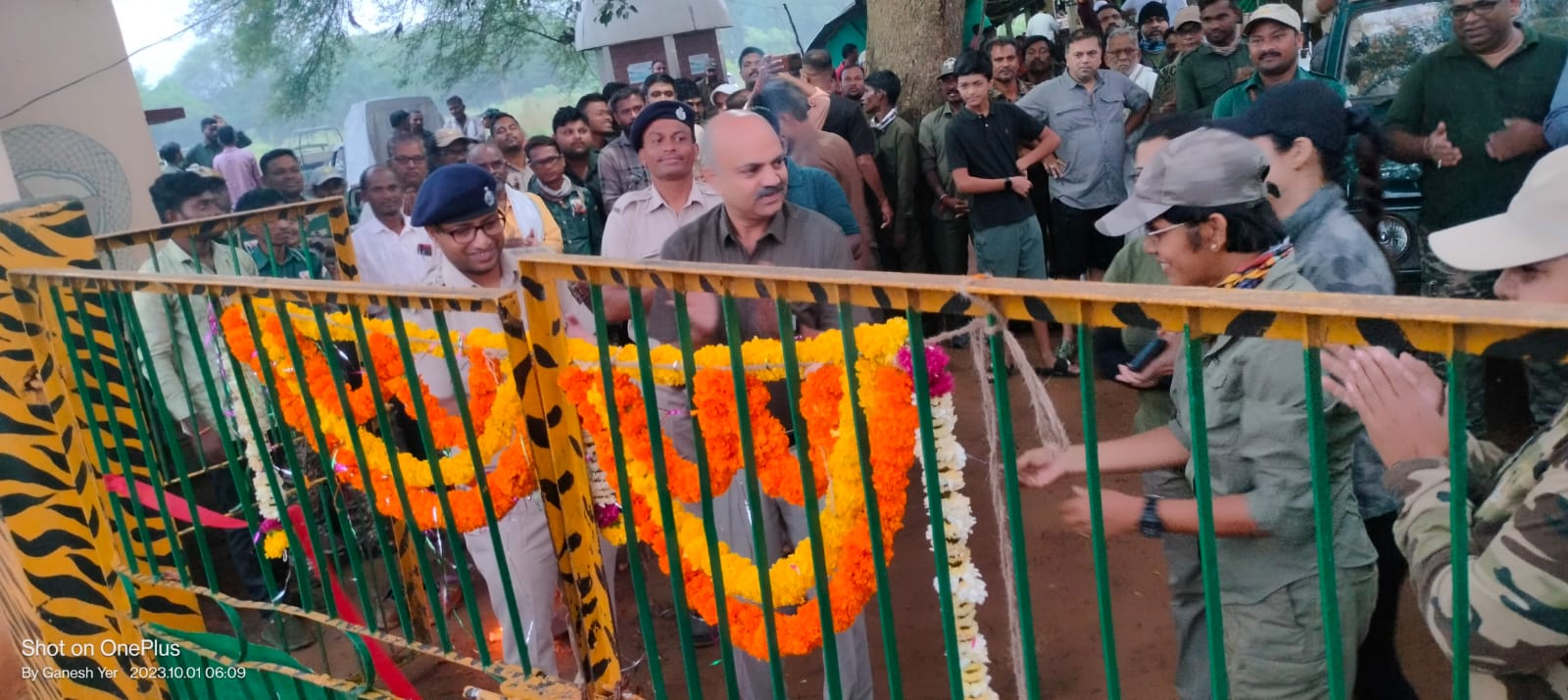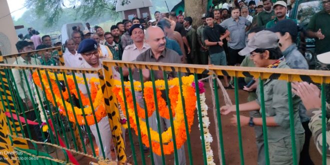 चिमूर:-पावसाळातील तिन महिन्याच्या विश्राती नंतर आज १ आक्टोबर पासुन ताडोबा अंधारी व्याघ्र प्रकल्पात तील कोर गेट सुरु झालेत त्यातील कोलारा कोर गेट येथील प्रवेशद्वार चा उद्घाटन मोठ्या उत्साहात पार पडला प्रवेशद्वाराच्या उदघाटन उपसचालक काळे यांच्या हस्ते करण्यात आला तर अभिनेत्री सदा सयद याच्या प्रमुख उपस्थिती प्रवेशद्वारातील फित कापून जंगल भ्रमती करणाऱ्या पर्यटकाना पुष्पगुच्छ देऊन स्वागत करण्यात आले.आजचा पहिला दिवसातच अंदाजे १८६ पर्यटकांनी सफारी चा आनंद घेतला असुन पर्यटकामध्ये जिप्सी मालक / मार्गदर्शक / चालक / यांच्या मध्ये आनंदाचा वातावरण दिसु लागला.