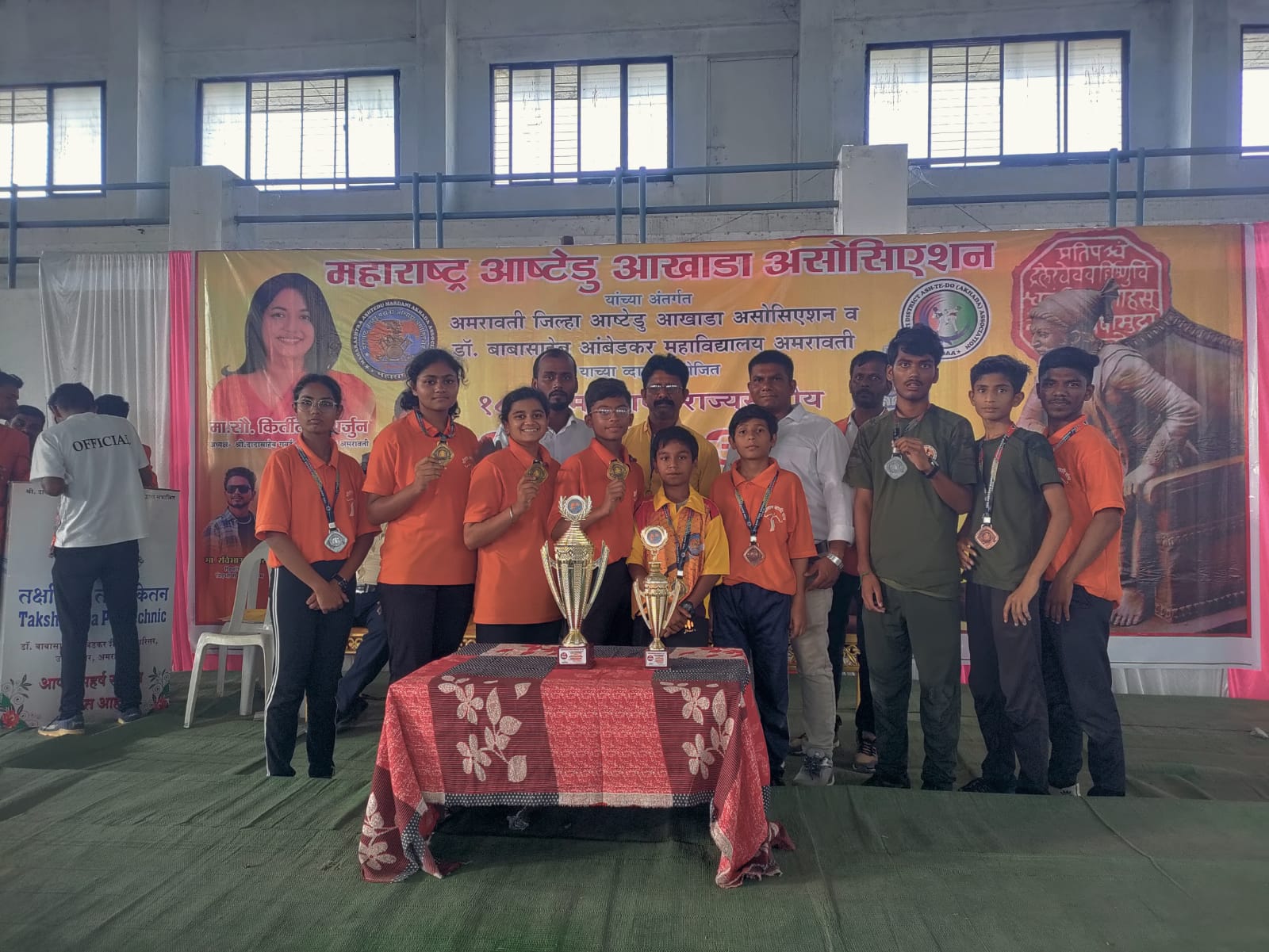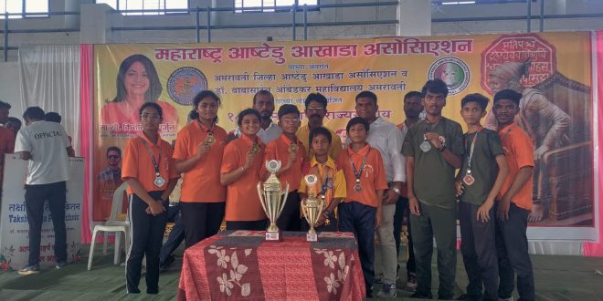 वरोरा:-३० सप्टेबर ते २ आॕक्टोबर २०२३ ला अमरावतीच्या डाॕ. बाबासाहेब आंबेडकर महाविद्यालयात अमरावती जिल्हा आष्टेडु आखाडा असोसिएशन व डाॕ बाबासाहेब आंबेडकर महाविद्यालय उत्तम नगर अमरावतीच्या संयुक्त विद्यमाने १८ व्या राज्यस्तरीय आष्टेडु आखाडा स्पर्धा २०२३ चे आयोजन करण्यात आले होते . या स्पर्धेत वरोरा यांच्या फौजी वाॕरिअर्स च्या विद्यार्थ्यांनी नेत्रदिपक यश संपादन केलेले आहे .