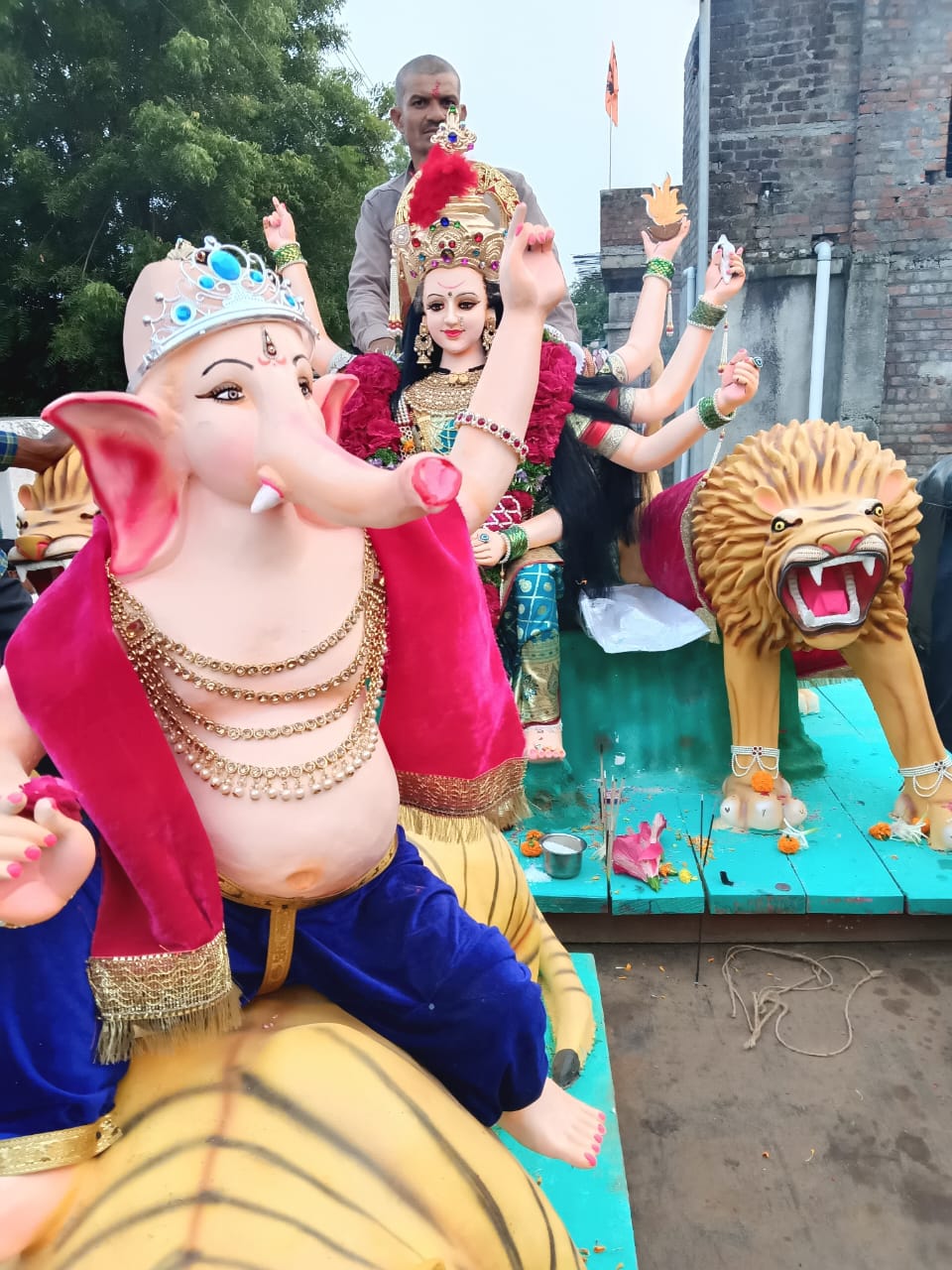हि चालत आलेली परंपरा कृष्णापुरा गावातील हिंदू बांधवानी नवरात्र पार्श्वपर्वावर या खुशीच्या वातावरनात आनंदने बाल युवक दुर्गा उत्सव मंडळ व गावकरी मंडळीनी ट्रॅक्टर ट्रॉलीमध्ये असलेल्या दुर्गा मातेच्या मूर्तीच्या दर्शनासाठी वाजत गाजत संपुर्ण गावामध्ये मिरवणूक काढण्यात आली यावेळी गावचे प्रतिष्ठित अरविंद गेडेकर,ग्रामपंचायत सदस्य माजी सरपंच प्रशांत गुरनुले. मनोज भुजाडे,आनंदराव भोयर, रूपराव देशमुख, प्रमोद गेडेकर, राजेश कामडे, गोपाल ठाकरे, दिलीप डाखोरे, वामनराव गुरनुले, नरेंद्र गुरनुले, शंकर येंडे.सुधाकर भुजाडे रमेश जुनघरे, गजानन रामगडे, राजेंद्र डाखोरे, प्रभाकर कामडे, हरिचंद्र राऊत, दिनेश गुरनूले ,नरेश भुजाडे, मनोहर गुरनुले मोरेश्वर भुजाडे, शंकर चौधरी, दिनेश कामडे, कुंडलिक खेडेकर,मंगेश कामडे,नरेश कामडे, मंगेश तिवडे महेश कामडे, रामू गाऊत्रे,राजेंद्र गाऊत्रे, गुरुदेव यादव, अतुल चौधरी, दिंगबर भोयर, रमेश देशमुख,आदी गावकरी मंडळी च्या उपस्थित बाल युवक दुर्गा उत्सव मंडळाचे अध्यक्ष सुरेश जूनघरे, रितेश कामडे,योगेश डाखोरे, मयूर गेडेकर, आदित्य राऊत, प्रविण ठाकरे,निकेश भुजाडे, सागर ठाकरे,सागर भुजाडे,विशाल गाऊत्रे, आकाश गाऊत्रे, रोशन कामडे, विरेंद्र गुरनुले, नरेश जुनघरे, यश भुजाडे,अक्षय भुजाडे, संदीप कामडे, या मंडळाच्या कार्यकर्त्यांनी दरवर्षीप्रमाणे याहीवर्षी नवरात्र उत्साहात मोठ्या आनंदाने साजरा करण्याच्या संकल्प करून कृष्णापुर येथे दुर्गा मातेच्या मंडपात दुर्गा मातेची स्थापना करण्यात आली आहे.