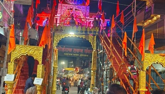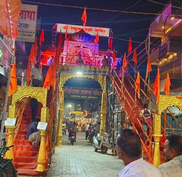 शेवगांव:-याबाबत सविस्तर वृत्त असे की यंदाच्या नवरात्र उत्सवामध्ये शेवगाव शहरातील ऐतिहासिक भोईराज मित्र मंडळ यांचा सुंदर माहूरगड माता मंदिर उभारणी मख्य बाजारपेठेमध्ये भोईराज पंच मंडळाच्या समोरील एका उंच मनोऱ्यावर स्थापना केल्याने आकर्षक विद्युत रोषणाई आणि आरास केल्याने शेवगाव शहरासह तालुक्यातील देवीच्या भाविक भक्तांचे लक्ष वेधून घेत आहेत महिला आणि आबालविरुद्ध या देवीच्या दर्शनासाठी गेल्या आठ दिवसापासून गर्दी करत आहेत हा देखावा तयार करण्यासाठी मंडळाचे खालील कार्यकर्त्यांनी अपार मेहनत घेतली.