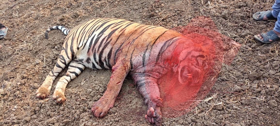 चिमूर:-चंद्रपुर जिल्ह्यातील चिमूर तालुका येथील वाहणगांव परिसरातील घटना. चिमूर ताडोबा व्याघ्र प्रकल्पात एकीकडे वाघांच्या संख्येत दिवसेदिवस वाढ होत असताना, वाहणगांव परिसरात शिव मंदीराच्या बाजुला असलेल्या ठिकाणी भलताच प्रकार घडला आहे. दोन वाघांची झुंज एका वाघाला चांगलीच महागात पडली.वहाणगांव परिसरातील सुभाष दोडके यांच्या पूर्वेस असलेल्या शेतात दोन वाघांच्या झुंजात चार वर्षीय वाघ ठार झाल्याचा धक्कादायक प्रकार समोर आला आहे. त्यामुळे परिसरातही खळबळ माजली आहे. पुढिल तपास वन परिक्षेत्रातील अधिकारी करत आहे.