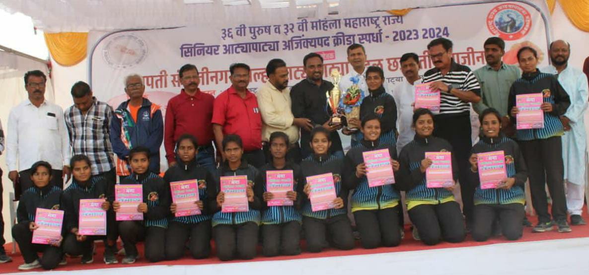भंडारा:-युवक व क्रिडा विभाग भारत सरकार, महाराष्ट्र राज्य आट्यापाट्या महामंडळ, महाराष्ट्र राज्य क्रिडा परिषद व जिल्हा आट्यापाट्या मंडळ छत्रपती संभाजी नगर औरंगाबाद यांच्या संयुक्त विद्यमानाने ३६ वी मुले व ३२ वी मुली सिनीअर महाराष्ट्र राज्य आट्यापाट्या चॅम्पियनशीप २०२३- २०२४ ची स्पर्धा डॉ. बाबासाहेब आंबेडकर मराठवाडा विद्यापीठ छत्रपती संभाजी नगर औरंगाबाद येथे नुकतीच घेण्यात आली. त्यात मुलींमध्ये राज्यस्तरिय आट्यापाट्या स्पर्धेत धाराशिव संघ विजेता तर भंडारा संघ उपविजेता ठरला आहे.