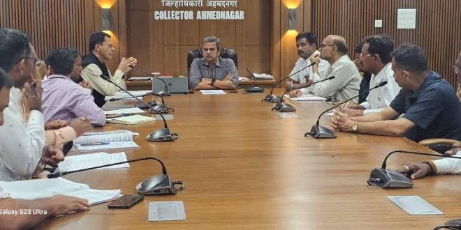 शेवगांव:- दिनांक ०५/ १२/ २०२३ वार मंगळवार रोजी जिल्हाधिकारी अहमदनगर यांनी शेवगाव शहराच्या नवीन पाणी पुरवठा तातडीने चालू करण्यासंदर्भात बैठक घेतली. सदर बैठकीसाठी शेवगाव नगर परिषदेचे प्रशासक प्रांतधिकारी प्रसाद मते साहेब, मुख्याधिकारी सचिन राऊत साहेब, नगरपरिषद चे पाणीपुरवठा विभागाचे इंजिनीर मुंगसे महाराष्ट्र जीवन प्राधिकरण M.G.P. चे अधिकारी, पाणी पुरवठा योजनेचे तांत्रिक सल्लागार मानव कन्स्ट्रक्शन धुळे { सनेर } व योजनेचे वादग्रस्त ठेकेदार इंद्रायणी एजन्सीचे संजीव कुमार यांच्या सोबत बैठकीचे आयोजन करण्यात आले.