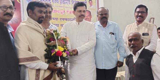 चंद्रपूर:-शिक्षणाच्या हक्कासाठी शिक्षकांच्या सन्मानासाठी हे ब्रीद घेऊन शिक्षकांच्या न्यायासाठी लढणा-या शिक्षक भारती संघटनेची नागपूर आणि अमरावती विभागाची सहविचार सभा आमदार कपिल पाटील यांचे उपस्थितीत नागपूर येथील लोहिया अध्ययन केंद्राच्या सभागृहात संपन्न झाली. महाराष्ट्र राज्य प्राथमिक शिक्षक भारती अध्यक्ष नवनाथ गेंड,राष्ट्र सेवा दल विश्वस्त अतुल देशमुख,राज्य कार्याध्यक्ष अर्जून कोकाटे, शिक्षक भारती राज्य कार्याध्यक्ष दिनेश खोसे,राज्य उपाध्यक्ष प्रकाश ब्राम्हणकर,माध्यमिक विभागीय अध्यक्ष भाऊराव पत्रे,अमरावती विभागीय अध्यक्ष पुरुषोत्तम ठोकळ, ऍड. शरद कोकाटे, नागपूर जिल्हाध्यक्ष प्रवीण फाळके,गोंदिया जिल्हाध्यक्ष सुशिलकुमार बन्सोड,भंडारा जिल्हाध्यक्ष रवींद्र पटले,गडचिरोली जिल्हाध्यक्ष पुंडलिक देशमुख,यवतमाळ जिल्हाध्यक्ष गजानन पवार, नलिनी नागरिकर,गुलाबराव मौदेकर,संजय मेश्राम आदी उपस्थित होते.या सहविचार सभेत शिक्षकांच्या विविध प्रश्नांवर चर्चा झाली. कंत्राटीकरण,खाजगीकरण,शाळा बंद धोरण यांचे विरोधात लवकरच शिक्षक भारती राज्यव्यापी लढा उभारणार असल्याचे सुतोवाच राज्याध्यक्ष नवनाथ गेंड यांनी केले. आमदार कपिल पाटील यांनी पदाधिकाऱ्यांना मार्गदर्शन केले.