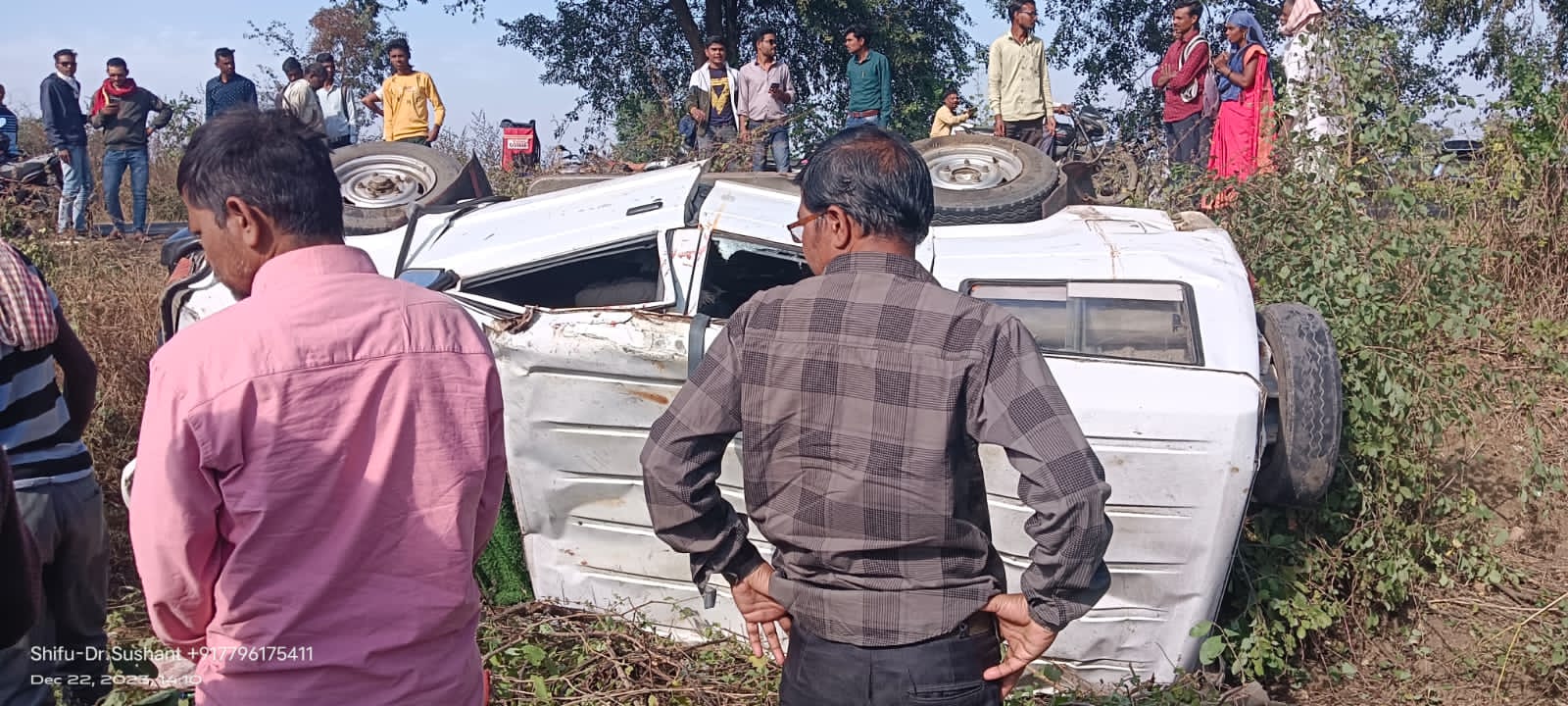 चिमूर:-शेगांव येथून सारंगगड येथे मयतीच्या कार्यक्रमाकरीता जात असतांना वाटेत चिमूर नेरी मार्गावर पोर्ल्टीफार्म जवळ चारचाकी फोरव्हिलर गाडी क्रमांक एम.एच.२६ एल.१६६७ वाहन पलटी झाली टाटा सुमोचा राड तुटल्याने अपघात झाला.