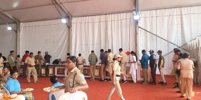 अशी आहे भोजन व्यवस्था : राष्ट्रीय क्रीडा स्पर्धेदरम्यान विसापूर तालुका क्रीडा संकूल येथे रोज 2500 ते 3000 जणांसाठी सकाळचा नास्ता, दुपारचे जेवण, सांयकाळी चहा-कॉफी आणि रात्रीच्या जेवणाची व्यवस्था करण्यात येत आहे. सकाळी 7.30 ते 10.30 या वेळेत खेळाडू, प्रशिक्षकांना नास्ता दिला जातो. यात दिवसनिहाय मिसळ पाव, उपमा, पोहे, साबुदाणा खिचडी, वडासांबार, फळे, ब्रेड बटर, टी-कॉपी यांचा समावेश असतो. दुपारचे जेवण 12.30 ते 3.30 यावेळेत दिले जाते. याय दोन भाज्या (मिक्स व्हेज, वांगे, आलूमटर, सोयाबीन मटर व इतर भाज्यांपैकी कोणत्याही दोन) कडी, वरण, मसाला भात, पोळ्या, लोणचे, पापड, ग्रीन सलाद, चटणी आणि एक स्वीट यांचा समावेश असतो. तर रात्रीच्या जेवणात एक व्हेज भाजी व इतर पदार्थ दुपारच्या जेवणाप्रमाणेच असून रोज नॉन-व्हेज तयार करण्यात येते. तसेच कधी रबडी, व्हेजपुलाव, हलवा, आईसस्क्रीम आणि दूध देखील देण्यात येत आहे. भोजनाची संपूर्ण व्यवस्था बघण्यासाठी 250 ते 300 जणांची टीम कार्यरत आहे.