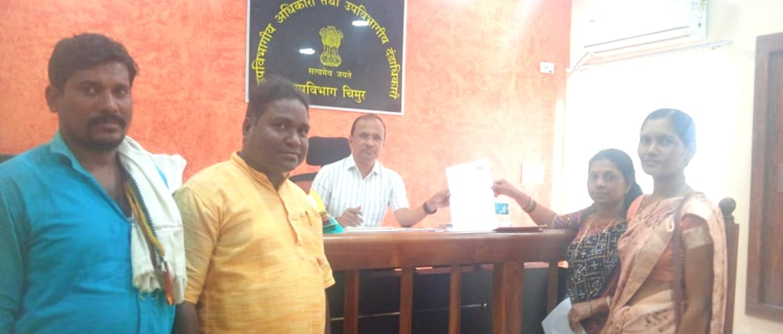 चिमूर:-दि. १५/०१/२०२४ हि धान खरेदी नोंदणीची अखेरची तारीख असल्याने धान खरेदी केंद्रांची मोजकी संख्या आणि इंटरनेट नेटवर्कची समस्या यामुळे शेतकऱ्यांची धान खरेदी नोंदणी पुरेशी झालेली नसल्यामुळे कुठलाही शेतकरी यापासून वंचित राहू नये म्हणून शासनाने पुन्हा १० दिवस नोंदणीची तारीख वाढवावी याकरिता उपविभागीय अधिकारी किशोर घाडगे यांना प्रिती दिडमुठे उपसरपंच साठगाव (को) यांनी निवेदन दिले.यावेळी प्रिती दिडमुठे उपसरपंच , विलास मोहिणकर तालुका सरचिटणीस , रामदास ठुसे व आदी उपस्थित होते.