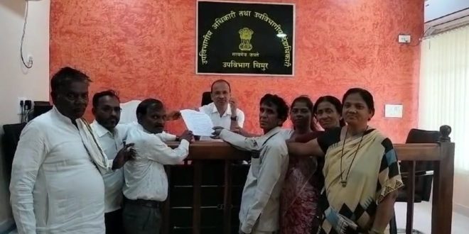 चिमूर:-केंद्र व राज्य शासनाच्या आदेशानुसार शासकीय जमिनीवरील अतिक्रमण नियमानुकुल करून कायमस्वरुपी पट्टे द्या अन्यथा होनाऱ्या निवडणुकीवर बहिष्कार टाकण्या संदर्भात उपविभागीय अधिकारी चिमूर याना निवेदन देण्यात आले.चिमूर नगर परिषद क्षेत्रातील इंदिरा नगर ह्या वस्तीत १९७५ पासून गोर गरीब कष्टकरी कामगार कुटुंबासहित वस्ती करून राहत असून. शासकीय वाटपात मिळालेल्या प्लाटचे कायमस्वरुपी पट्टे नसल्याने शासनाच्या सर्व सवलतीचा लाभ मिळत नसल्याने इंदिरा नगर येथील रहिवासी शासनाच्या सर्व सोई सवलती पासून वंचित आहेत.