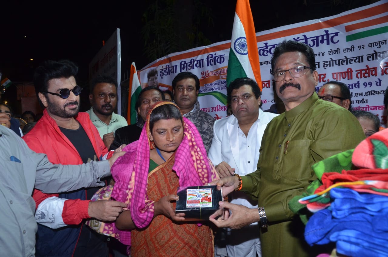 मुंबई:-भारताची आर्थिक राजधानी म्हणून ओळखल्या जाणाऱ्या मुंबईतील गरीब, गरजूवतांसाठी मुंबईकरांनी पुढाकार घ्यावा, सहकार्यासाठी मदतीला धावून यावे, अशी भावनिक साद इंडिया मिडीया लिंक अँड इव्हेंट्स मॅनेजमेंटचे मॅनेजिंग डायरेक्टर के रवीदादा यांनी बोलताना सर्वसामान्यांना घातली आहे.भारताच्या ७५ व्या सुवर्णमहोत्सवी प्रजासत्ताक दिनानिमित्ताने प्रजासत्ताकाच्या पूर्वसंध्येला केईएम, टाटा रुग्णालय परिसरात मॅनेजमेंटच्या माध्यमातून ध्वजारोहण आणि ब्लॅंकेट, फराळ किट आकर्षक तिरंगा ध्वजचे वाटप कार्यक्रम आयोजित करतात आला होता. यावेळी विविध मान्यवर उपस्थित होते. माजी नगरसेवक अनिल कोकीळ, ज्युनियर अभिनेता अनिल कपूर, फिरोज खान, राजेश खन्ना, अभिनेत्री ऐश्वर्या, अॅड. वैशाली बोरुडे , बाळा ब्रह्मभट, बंडू लोंढे, अभिनेता राहुल रवी आदि उपस्थित होते.