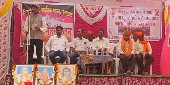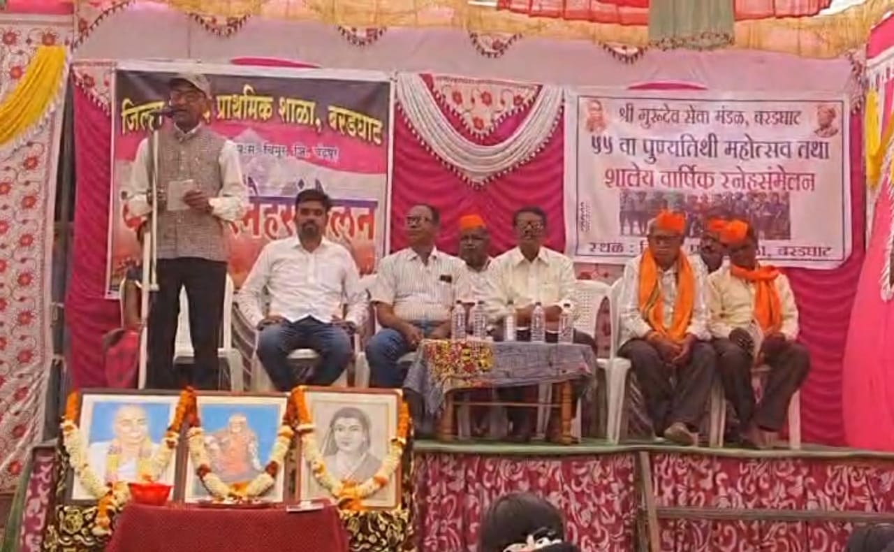 पाहुण्यांचे हस्ते क्रांतिज्योती सावित्रीमाई फुले,राष्ट्रसंत तुकडोजी महाराज, वैराग्यमूर्ती संत गाडगेबाबा यांच्या प्रतिमांना माल्यार्पण करण्यात आले.याप्रसंगी उदघाटक रामदास कामडी यांनी बरडघाट सारख्या लहान गावात शाळा, पालक आणि गुरुदेव सेवा मंडळाच्या माध्यमातून तीन दिवसांच्या वार्षिक स्नेहसंमेलनाचे आयोजन अभिनंदनीय असल्याचे सांगत गावाच्या पर्यायाने देशाच्या विकासाचे राष्ट्रसंतांचे स्वप्न पूर्ण करण्यासाठी सर्व ग्रामस्थांनी एकत्र आले पाहिजे,असे आवाहन केले.प्रमुख अतिथी प्रभाकर पिसे,प्रकाश कोडापे,रावन शेरकुरे यांनीही आपले मनोगत व्यक्त केले.