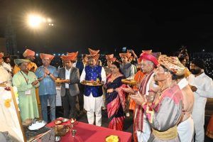 शिवाजी महाराजांच्या राज्याभिषेकाला 350 वर्षे पूर्ण झाल्याच्या निमित्ताने सांस्कृतिक कार्य मंत्री ना. सुधीर मुनगंटीवार यांच्या पुढाकारातून सांस्कृतिक कार्य विभागामार्फत ‘जाणता राजा’ या महानाट्याचे प्रयोग राज्याच्या सर्व जिल्ह्यांमध्ये आयोजित करण्यात येत आहे. चंद्रपूरच्या चांदा क्लब मैदानावर चार दिवस या महानाट्याचे प्रयोग आयोजित करण्यात आले आहे. त्याचा शुभारंभ ना.सुधीरभाऊ मुनगंटीवार यांच्या हस्ते हजारोंच्या उपस्थितीत झाला.