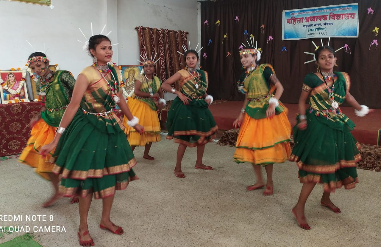 ह्याप्रसंगी महिला अध्यापक विद्यालयातील छात्रध्यापक विद्यार्थींनींनी माय भिमान, माय बापाने, आमर पारा तुमर पारा अशा विविध गाण्यांच्या तालावर अख्खं रसिकांचे मने जिंकली.कार्यक्रमाचे सूत्रसंचालन करिष्मा देशमुख व शेजल सिंगनजुडे यांनी केले. प्रास्ताविक अध्यापक विनोद चव्हाण यांनी केले तर उपस्थितांचे आभार पूजा चोपकर यांनी मानले.कार्यक्रमाच्या यशस्वीतेसाठी अध्यापक गणेश किरसान, वर्षा चांदेकर, आंभोरकर, मनोज टेकाम, निलिमा काळे, प्राजक्ता निर्वाण, नितिशा निर्वाण, अश्विनी हुकरे, अर्चना नेवारे, गायत्री जुगनायके, पूजा खंडाते, खुशबु धुर्वे, दिव्या कटरे, सुहानी फुलबांधे, भाग्यश्री चामलाटे, यामिनी निमकर, कविता चव्हान इत्यादी विद्यार्थींनी तसेच कर्मचारी वर्ग यांनी सहकार्य केले.