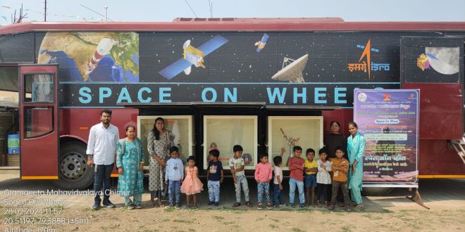 चिमूर:-अवकाशाशी संबंधित विविध शैक्षणिक आणि मनोरंजक बाबी अनुभवण्याची संधी कीडझी कॉन्व्हेट चिमूरचे भावी लहानगे वैज्ञानिक मिळावी या उद्धेशाने लहानग्या वयात विद्यार्थ्यांना बाह्य अवकाशातील विशिष्टतेची ओळख करून देणे, त्यांचे ज्ञान वाढवणे आणि त्यांना अविस्मरणीय अनुभव देण्यासाठी आपल्या देशातील भावी वैज्ञानिक यांना विज्ञान दिवसाच्या निमित्ताने स्थानिक ग्रामगीता महाविद्यालयात ,विज्ञान भारती आणि भारतीय अंतराळ संशोधन संस्था यांच्या संयुक्त विद्यमाने आयोजित विज्ञान प्रदर्शनी स्पेस ऑन विल्स : अंतराळाची महायात्रा हा उपक्रमात कीडझी कॉन्व्हेट चिमुर येथील जुनियर आणि सिनीअर केजीच्या विद्यार्थी सह्भागी झालेत.