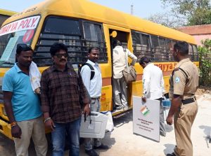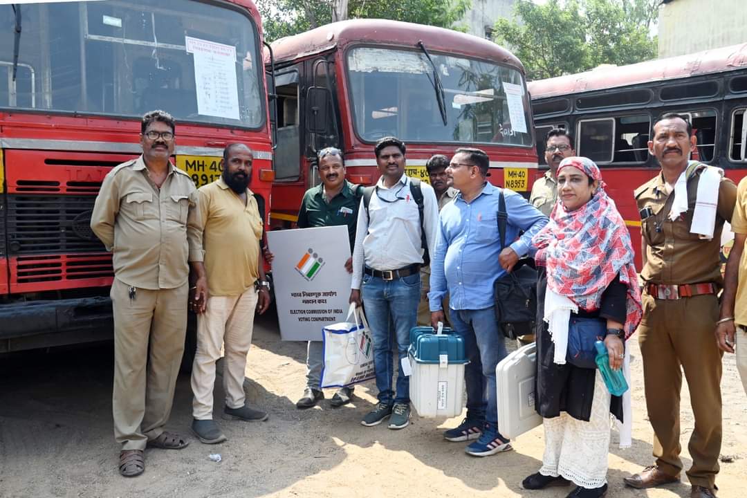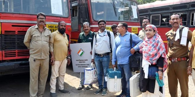 मतदान साहित्य घेऊन पोलिंग पार्टी रवाना