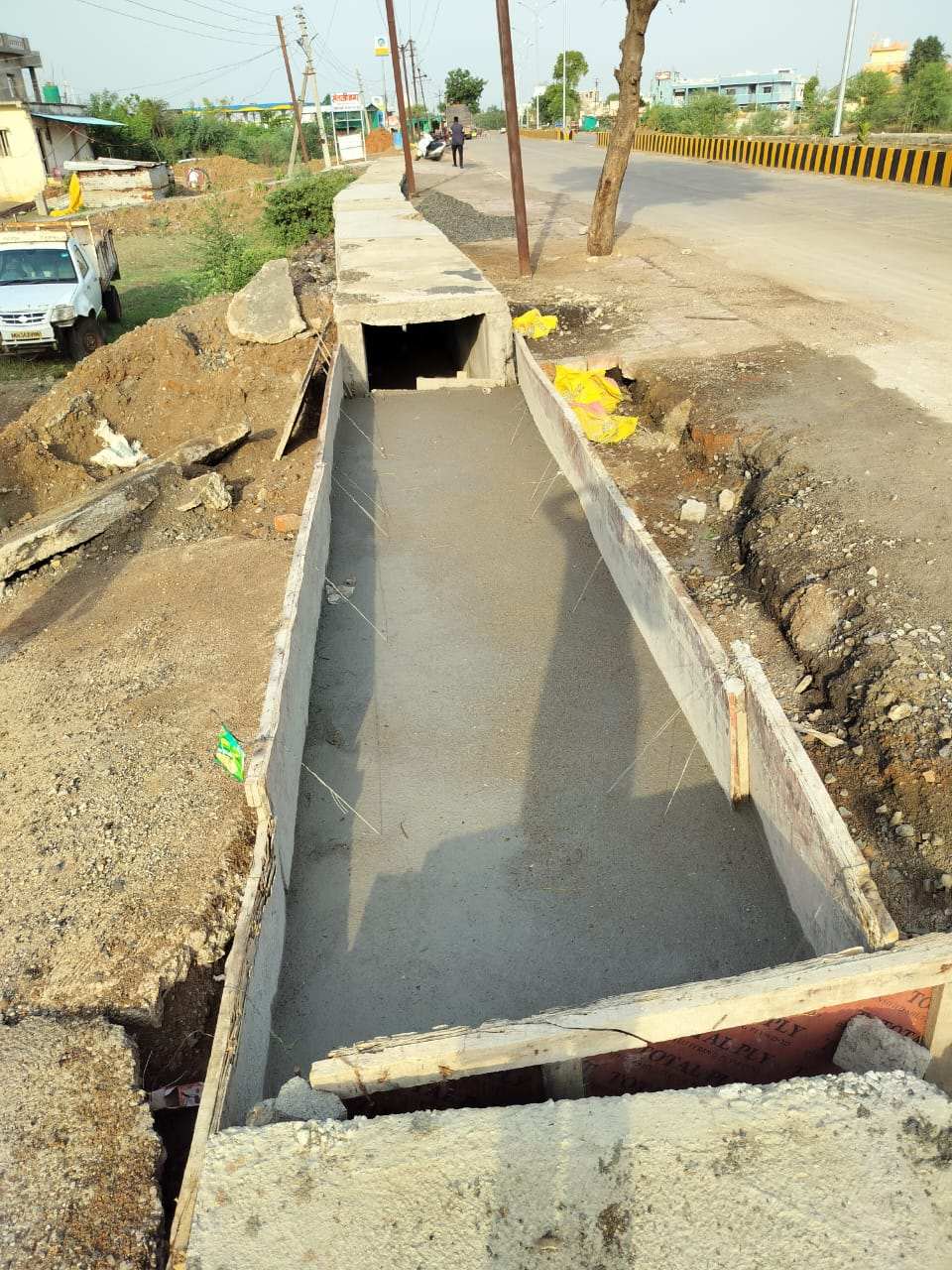 चिमूर :- चिमूर वडाळा पैकू येथील चिमूर – कांपा रोडवर पिसे पेट्रोल पंप ते संताजी नगर पर्यत दोपदरी मार्गाचे बांधकाम करण्यात आले पण संताजी नगर मधील दोपदरी रस्त्याच्या बाजुला नालीचे बांधकाम न करताच सोडून गेले.परंतू कवडू लोहकरे कडुन सार्वजनिक बांधकाम विभाग चिमूर चे अभियंता समीर उपगन्लावार यांच्याकडे पाठपुरावा करण्यात आला आणी लगेच कामाला सुरुवात केली.