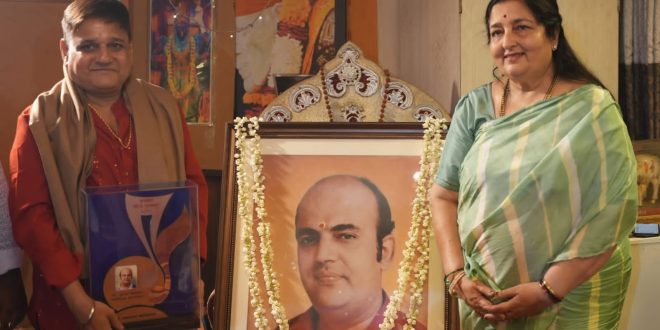 (मुंबई): सुप्रसिद्ध अकॉर्डियन वादक, कुशल संगीत संयोजक आणि प्रतिभाशाली संगीतकार अरुण पौडवाल यांच्या स्मृती जपणारा आणि कुठलाही बडेजावपणा न आणता अत्यंत साधेपणाने घरगुती मंगलमय वातावरणात गेली २७ वर्षे साजरा होणारा ‘स्व. अरुण पौडवाल यांच्या स्मृति प्रित्यर्थ देण्यात येणारा “कृतज्ञता गौरव पुरस्कार” नुकताच प्रसिद्ध गायक संगीतकार त्यागराज खाडिलकर यांना सुप्रसिद्ध पार्श्वगायिका पद्मश्री अनुराधाजी पौडवाल यांच्या हस्ते आणि कवीता पौडवाल-तुळपुळे व पौडवाल कुटुंबियांच्या उपस्थितीत, त्यांच्या खार येथील निवास्थानी प्रदान करण्यात आला. ५१ हजार रोख रुपये आणि सन्मानचिन्ह असे या पुरस्काराचे स्वरूप आहे.