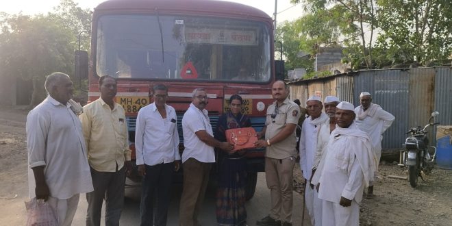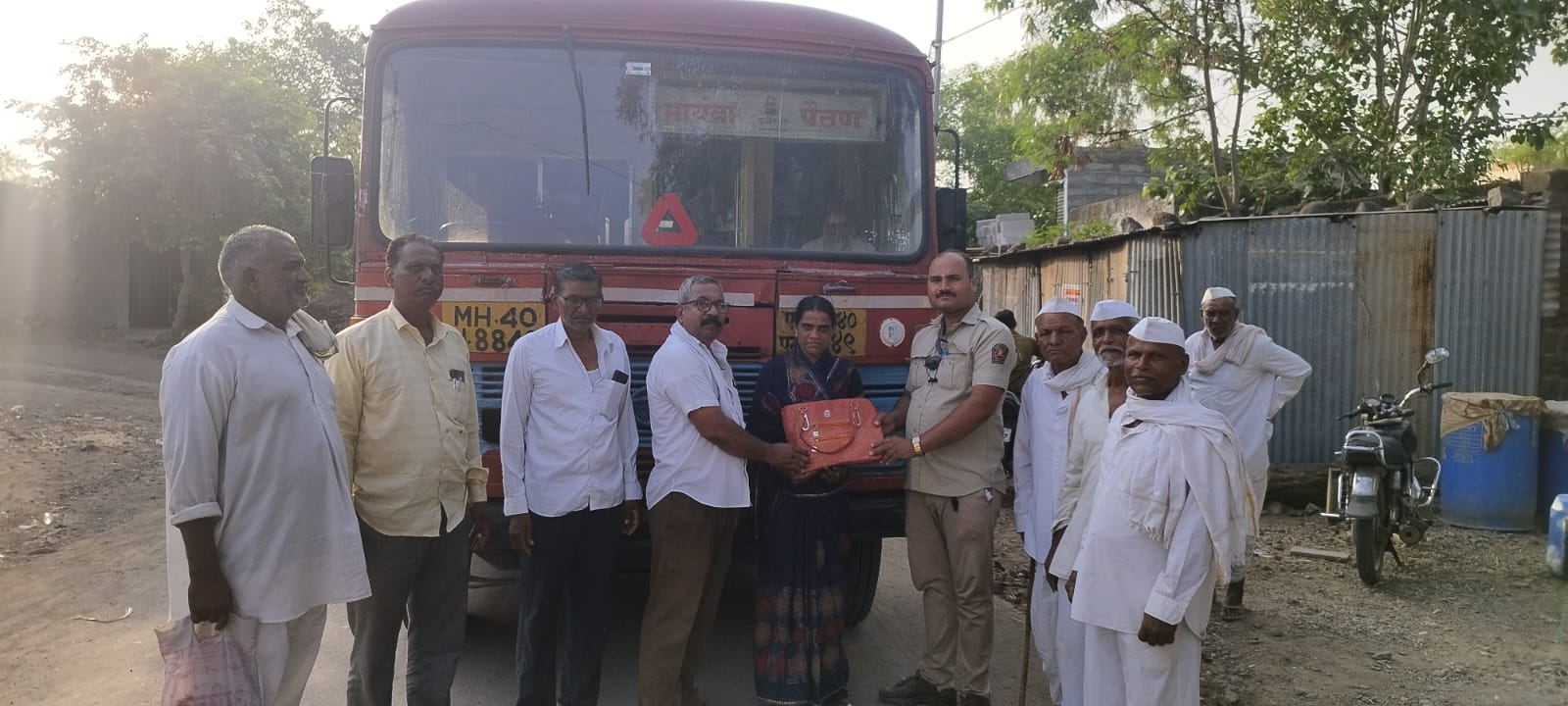 शेवगाव:-याबाबत सविस्तर वृत्त असे की शेवगाव आगाराची शेवगाव मायंबा बस श्रीक्षेत्र मायंबा येथे मुक्कामी जात असताना अमरापूर ते सावरगाव प्रवास करणाऱ्या महिलेची पर्स बसमध्ये विसरून राहिली असता मुक्कामाच्या ठिकाणी मायंबा येथे पोहोचल्यावर एस.टी. वाहक श्री संकेत शिरसाठ यांना पर्स आढळली व इतर प्रवाशांसमक्ष पर्स तपासले असता पर्समध्ये दागिने व रोकड रक्कम असल्याचे निदर्शनास आल्यानंतर सदर पर्स ही अमरापूर वरून बसलेल्या महिलेची असल्याचे समजले त्यानंतर दुसऱ्या दिवशी पैठण कडे जात असताना सावरगाव येथे ग्रामस्थांच्या समक्ष सदर पर्स श्री कुशाबा आसाराम म्हस्के यांच्या पत्नीची असल्याचे खात्री झाली व इतर सर्व गोष्टींची खातरजमा करून सुपूर्द करण्यात आली,,, आपली पर्स सुखरूपरीत्या मिळाल्यानंतर ग्रामस्थांनी चालक श्री बाळासाहेब दहिफळे व वाहक ही संकेत शिरसाठ यांचे आभार मानले.