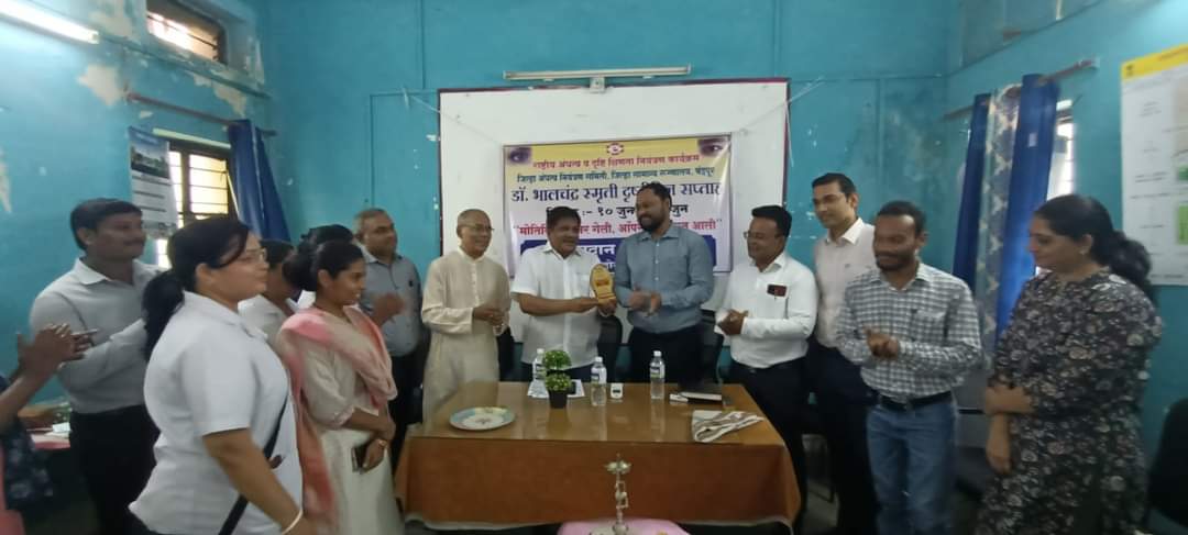 जिल्हा सामान्य रुग्णालयाच्या वतीने 2023-24 करीता मोतिबिंदू शस्त्रक्रियेचे उद्दिष्ट 4570 असतांना 5099 शस्त्रक्रिया करण्यात आल्या असून शासकिय संस्थेत मोतिबिंदू शस्त्रक्रियेमध्ये महाराष्ट्रात चंद्रपूरने प्रथम क्रमांक पटकाविला आहे. यामध्ये राष्ट्रीय अंधत्व व दृष्टिक्षिणता नियंत्रण, जिल्हा सामान्य रुग्णालय, चंद्रपूरच्या टिमने उत्तम कामगिरी केली आहे. जिल्हा शल्य चिकित्सक डॉ.महादेव चिंचोळे यांच्या हस्ते यावेळी नेत्रशल्य चिकित्सक डॉ. सरोदे व डॉ. पटेल यांना शाल व श्रीफळ देवून सत्कार करण्यात आला. तसेच नेत्र विभागाच्या सर्व टीमचे अभिनंदन करण्यात आले.