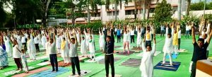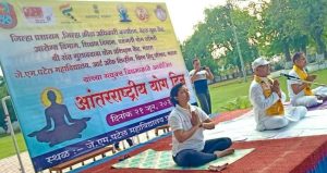 (भंडारा ) – दहाव्या आंतरराष्ट्रीय योग दिनानिमित्त आयोजित जे. एम. पटेल महाविद्यालयाच्या प्रांगणात आयोजित जिल्हास्तरीय कार्यक्रमाला उस्फुर्त प्रतिसाद मिळाला. यामध्ये साधारणत: पाचशेच्यावर नागरिकांनी सहभाग घेऊन योगासनांची सामूहिक प्रात्यक्षिके केली.