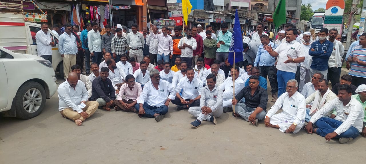 महामानव डॉ. बाबासाहेब आंबेडकर व सर्व दलित समाजाबद्दल आक्षेपार्ह भाषा असणारी काही पत्रके नाशिकमध्ये पसरवून जातीवाद निर्माण केल्याच्या निषेधार्थ शेवगांवच्या क्रांती चौकात रास्ता रोको
