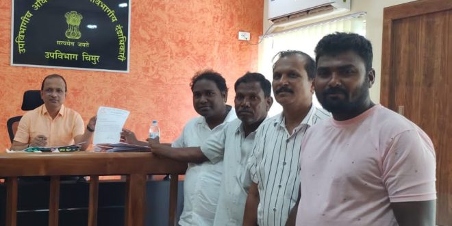 चिमूर : – दिनांक.२७/०६/२०२४ नगर परिषद चिमुर ने दैनंदिन मासे विक्रीची गुजरी हि अगदी देशी दारू विक्रीच्या दुकानाला लागुन दिले गेले असल्याने मासे विक्रेत्यांना तसेच ग्राहकांना याचा नाहक त्रास सहन करावा लागत आहे. व त्याचबरोबर या देशी दारू दुकानालगत मासळ, कोलारा, पळसगाव, मुल जाणाऱ्या वाहनाचा थांबा (बस स्टॉप) असल्याने प्रवाशांना याचा नाहक त्रास सहन करावा लागत असल्याने तात्काळ या देशी दारू दुकानावर कारवाई करून दुसऱ्या ठिकाणी स्थलांतरीत करण्यात यावे अशी निवेदनाच्या माध्यमातून उपविभागीय अधिकारी यांना मागणी करण्यात आली यावेळी देविदास मोहिणकर , चंदू मडकवार , सुभाष मोहिणकर , शारदुल पचारे व आदी उपस्थित होते.