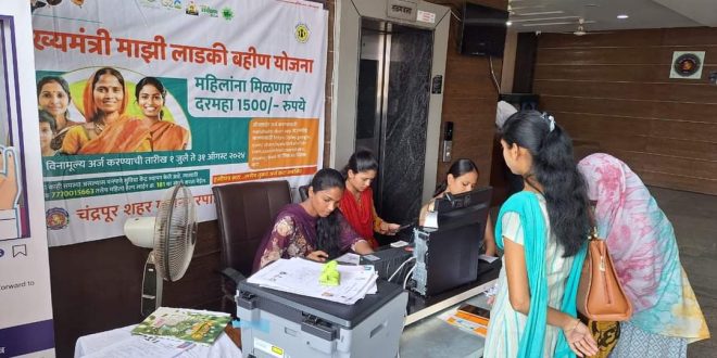 जिल्ह्यात आतापर्यंत ऑफलाइन पद्धतीने 22,476 तर ऑनलाईन पद्धतीने 16891 असे एकूण 39 हजार 367 अर्ज प्राप्त झाले आहेत. यात शहरी अंगणवाडी केंद्रात (ऑफलाईन 5529, ऑनलाईन 3859 एकूण 9388 अर्ज), ग्रामीण अंगणवाडी केंद्रात (ऑफलाईन 14931, ऑनलाईन 11994 एकूण 26925 अर्ज), चंद्रपूर शहर महानगरपालिकेच्या सुविधा केंद्रात (ऑफलाईन 1429, ऑनलाईन 535 एकूण 1964 अर्ज), जिल्ह्यातील नगरपालिका / नगरपंचायत क्षेत्रात असलेल्या सुविधा केंद्रात (ऑफलाईन 117, ऑनलाईन 90 एकूण 207 अर्ज) तर जिल्ह्यातील विविध सेतू केंद्रामध्ये (ऑफलाईन 470, ऑनलाईन 413 एकूण 883 अर्ज) अर्ज प्राप्त झाले आहेत. यात वैयक्तिकरित्या महिलांनी भरलेले व इतर सामाजिक संस्था व राजकीय पक्षांनी भरलेल्या अर्जाचा समावेश करण्यात आला नाही.