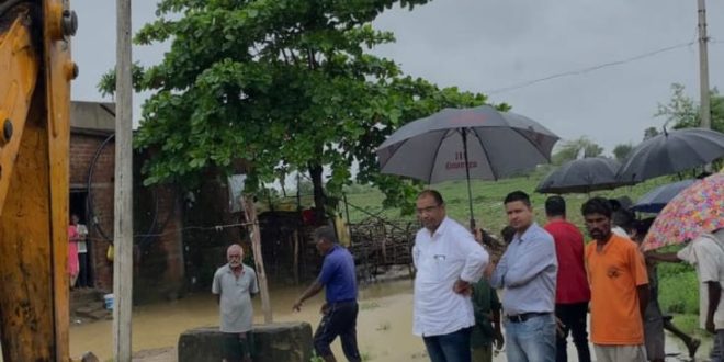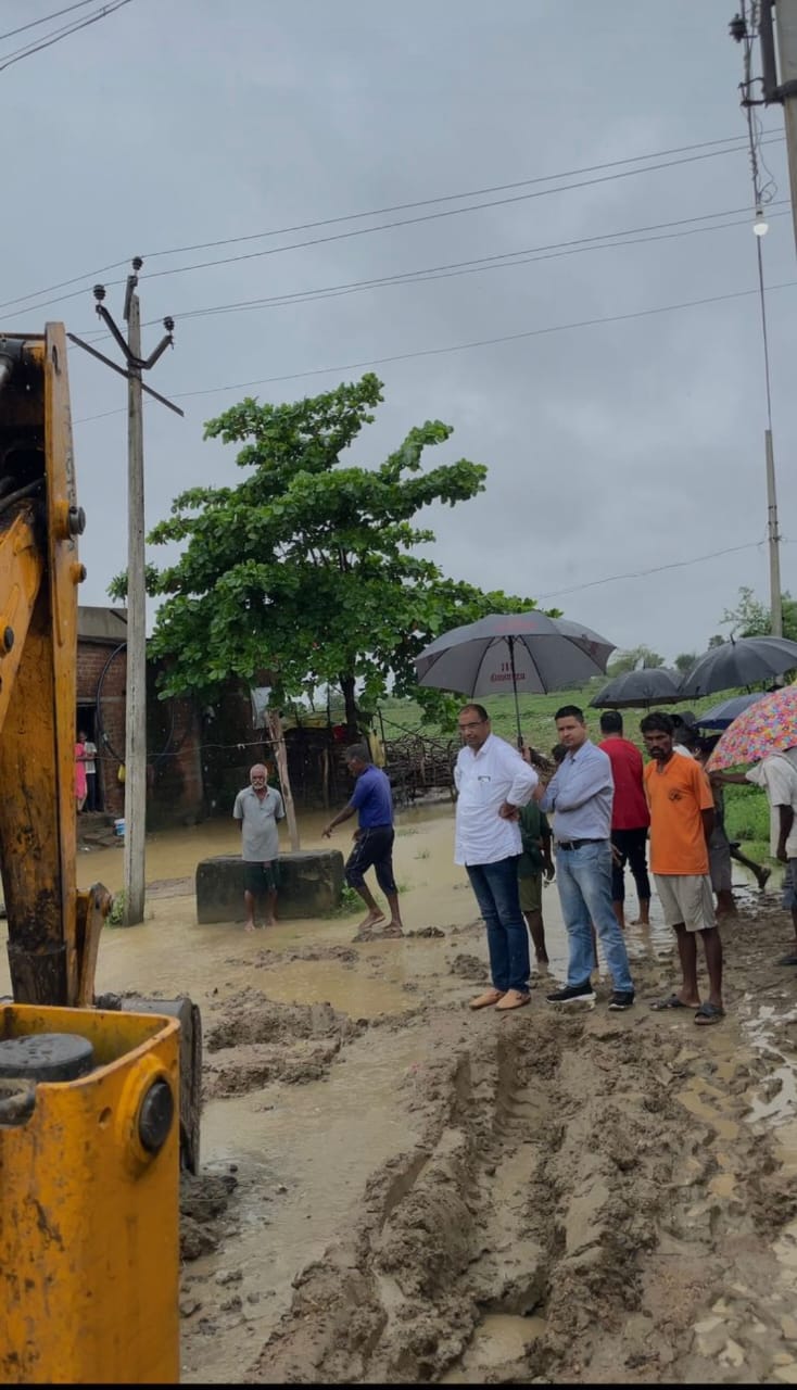 यातच जलजीवन मिशन अंतर्गत या गावात नळ योजनेचे काम सुरू असल्याने ठिकठिकाणी रस्ते खोदल्या गेलेले आहेत त्यामुळे त्या रस्त्याची माती रस्त्यावरच पडून असल्यामुळे गावात पाणी साचलेला आहे हेच पाणी गावातील घरात व अंगणात गेले असल्याची माहिती गावकऱ्यांनी दिली आहे.
