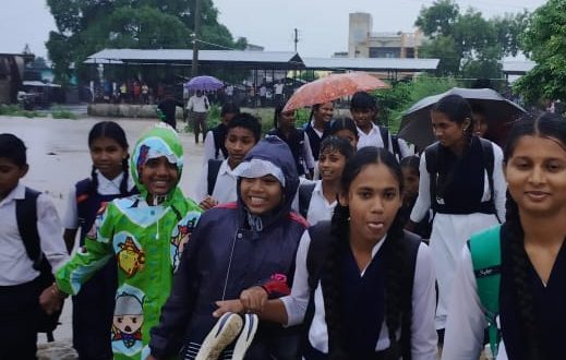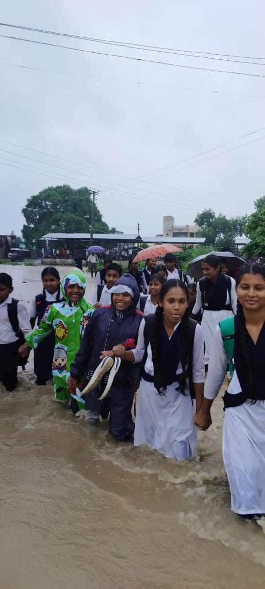 जिव मुठीत घेऊन शालेय विद्याथर्यांना भरपाण्यातुन येण्या-जाण्याकरीता पुलावरून करावा लागतो प्रवास