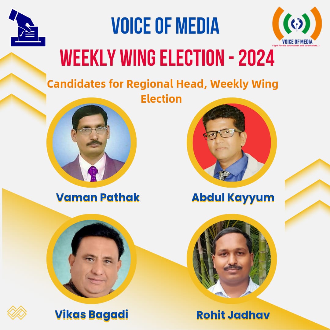 चंद्रपूर :- व्हॉईस ऑफ मीडियाच्या साप्ताहिक (विंग) विभागाची, प्रदेश अध्यक्ष पदासाठी निवडणूक जाहीर झाली आहे. ही निवडणूक चौरंगी होत असल्याने चुरस निर्माण झाली आहे. २८ जुलैला होणाऱ्या निवडणुकीमध्ये चार उमेदवार निवडणूक रिंगणात उभे आहेत.जगातील ४३ देशांमध्ये आणि देशातील क्रमांक एकची व्हॉईस ऑफ मीडिया ही पत्रकारांसाठी लढणारी संघटना आहे. या संघटनेच्या साप्ताहिक विंगच्या प्रदेश अध्यक्षपदासाठी संस्थापक तथा राष्ट्रीय अध्यक्ष संदीप काळे,