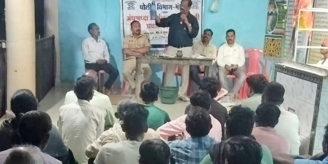 कार्यक्रमाचे प्रास्ताविक व संचालन सरपंच महाप्रकाश परबते यांनी केले.तर आभार पोलीस नाईक मंगेश पेंदाम यांनी मानले.पोलीस जिल्हा पोलीस विभागातर्फे राबवित असलेल्या अंधश्रद्धा निर्मूलन ” प्रचार व प्रसार” कार्यक्रमाची नागरिकांकडून स्तुती केली जात आहे. हे विशेष!