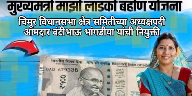 मुख्यमंत्री माझी लाडकी बहीण योजना चिमूर विधानसभा क्षेत्र समितीच्या अध्यक्ष पदी आमदार बंटी भांगडिया यांची नियुक्ती