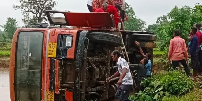 प्रवासी वाहतूक करीत असतांना बस झाली वाटेतच पलटी