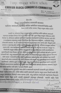 चिमूर : – दरवर्षी प्रमाणे यावर्षी सुद्धा १६ ऑगस्ट ला चिमूर तालूका काँग्रेस कमेटीच्या वतीने शहीदांना श्रध्दांजली वाहण्याचा कार्यक्रम घेण्यात येतो.चिमूर तालुका काँग्रेसच्या वतीने दिनांक. १६ ऑगस्ट ला शहीदांना श्रध्दांजली वाहण्याचा कार्यक्रम आयोजित करण्यात आला होता. या कार्यक्रमाला महाराष्ट्र राज्याचे विरोधी पक्ष नेते विजय वडेट्टीवार, गडचिरोली-चिमूर लोकसभा क्षेत्राचे खासदार डॉ.नामदेवरावजी किरसान प्रमुख म्हणून हजर राहणार होते.चिमूर चे माजी आमदार व महाराष्ट्र प्रदेश काँग्रेस कमिटीचे विद्यमान महासचिव डॉ. अविनाश वारजूकर उपस्थित राहणार होते. म्हणून श्रद्धांजली पर कार्यक्रमाची परवानगी मिळावी यासाठी दिनांक. १९/०७/२०२४ ला १ वाजुन १८ मिनीटांनी तालूका काँग्रेस कमेटी व खासदार डॉ.नामदेवराव किरसान यांनी नगरपरिषदेच्या मुख्याधिकारी सुप्रिया राठोड यांना रितसर पत्र दिले तेव्हाच मुख्याधिकारी यांनी सांगीतले कि लगेच तुम्हाला परवानगी देतो.
