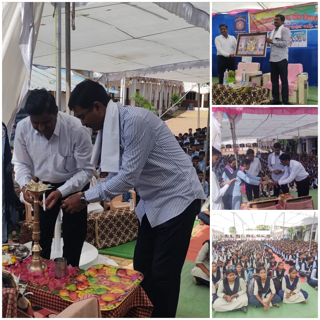 चिमूर :- नेहरू विद्यालय व उच्च माध्यमिक विद्यालय चिमूरच्यां विद्यार्थ्यांनी प्रश्न विद्यार्थ्यांचे उत्तर आमदारांचे. संवाद आमदारांशी या कार्यक्रमात संवाद साधला विद्यार्थ्यांनी विचारलेल्या प्रश्नांना आमदार किर्तिकुमांर भांगडीया यांनी उत्तर दिले. या कार्यक्रमाने मुलांमधे उत्साहाचे वातावरण होते. विद्यार्थ्यांचा आत्मविश्वास वाढविण्यासाठी नेहरू विद्यालय चिमूरच्या वतीने विविध कार्यक्रमाचे आयोजन करण्यात येते. विद्यालय मधून विद्यार्थी बाहेर पडताना विद्यार्थ्यांनी सक्षम होण्यासाठी नेहरू विद्यालयचे मुख्याध्यापक विविध उपक्रम व कार्यक्रम राबवित असतो त्याच अनुषंगाने दिनांक २७ आगस्ट रोजी सकाळी ९ वाजता प्रश्न विद्यार्थ्यांचे उत्तर आमदारांचे.विद्यार्थ्यांचा आमदारांशी संवाद या कार्यक्रमाचे आयोजन करण्यात आले होते.