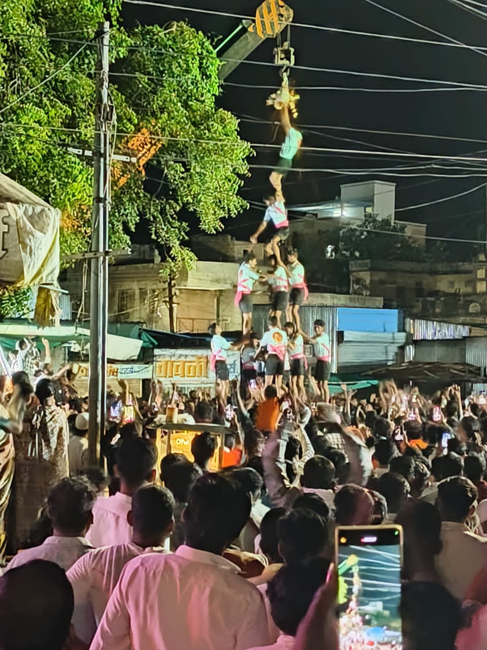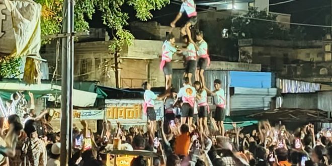 गोपाळकाल्याच्या निमित्त आयोजित भव्य दहीहंडी फोडण्याचा मान “राजे संभाजी महाराज” मित्र मंडळ पैठण यांनी पटकावला