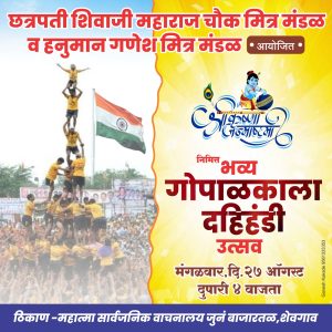 शेवगाव :- याबाबत सविस्तर वृत्त असे की शेवगाव शहरातील महात्मा सार्वजनिक वाचनालया समोरील मैदानात छत्रपती शिवाजी महाराज चौक मित्र मंडळ आणि हनुमान गणेश मित्रमंडळ आयोजित श्रीकृष्ण जन्माष्टमी व गोपाळकाल्या च्या निमित्ताने आयोजित भव्य दहीहंडी चा भव्य कार्यक्रम आयोजित करण्यात आला होता यावेळी सुमारे आठ गोविंदा मंडळांनी सहभाग घेतला होता. राष्ट्रीय स्वयंसेवक संघाचे जगदीश धूत, डॉ. कृष्ण देहाडराय बंडूशेठ रासने, विद्याताई गाडेकर,घुले तात्या, दिलीप सुपारे यांच्या हस्ते नारळ फोडून शुभारंभ करण्यात आला.