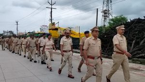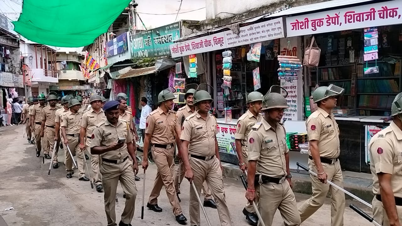 त्यानंतर इंदिरा गांधी चौक. नेहरू चौक. शहीद बालाजी रायपूरकर चौक. मार्केट लाईन. छत्रपती शिवाजी महाराज चौक. चावडी मोहला. संताजी जगनाडे महाराज चौक. मासल रोड ने मार्गक्रमण करीत अटल बिहारी वाजपेयी चौक येथे रूट मार्चच समारोप करण्यात आला. या रूट मार्च मधे पोलिस उपविभागीय अधिकारी राकेश कुमार जाधव. पोलिस निरीक्षक संतोष बाकल यांचें सह सहाय्यक पोलिस निरीक्षक. पोलिस उप निरीक्षक. दंगा नियंत्रण पथक.पोलिस हवालदार. पोलिस शिपाई. होमगार्ड पथक सहभागी झाले होते.