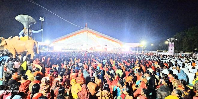शेवगाव :- शिवाला प्रसन्न करण्यासाठी होम हवन,दानधर्म व तपादी विधी करण्याचे शास्त्राने सांगितले. एकाच देवावर निष्ठा असावी.वारंवार देव बदलू नये.मनात श्रद्धाभाव असेल तर,शंकराचे ठायी ठायी अस्तित्व जाणवते. असे प्रतिपादन शिवपुराण कथाकार समाधान महाराज शर्मा यांनी केले.लोकनेते स्व.मारुतराव घुले पाटील यांच्या जयंतीनिमित्त शेवगाव शहरातील खंडोबानगर मैदानावर प्रसिद्ध शिवपुराण कथाकार समाधान महाराज शर्मा यांच्या शिवपुराण कथेचे आयोजन करण्यात आले आहे. दुसरे पुष्प गुंफताना शर्मा महाराज बोलत होते. प्रथम शिवशंभू व स्व.मारुतराव घुले पाटील यांच्या प्रतिमेचे पुजन माजी आमदार चंद्रशेखर घुले,माजी जिल्हा परिषद अध्यक्षा राजश्री घुले,पंचायत समितीचे माजी सभापती डॉ.क्षितीज घुले आदींच्या हस्ते करण्यात आले.