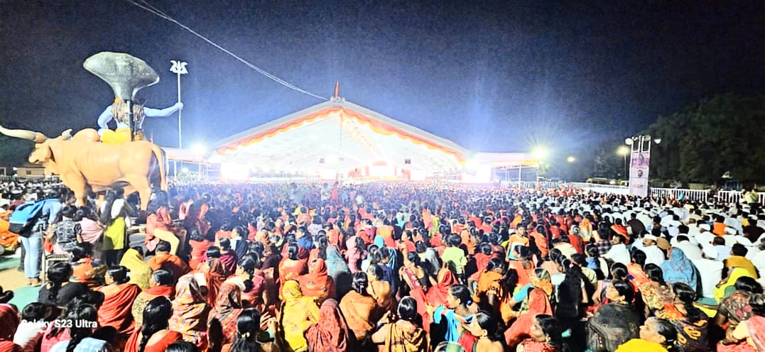 आयुष्याची शिदोरी शिष्यासाठी जो हवाली करतो तो खरा गुरु होय.भस्माची महती सांगताना ते म्हणाले,मस्तकावर त्रिपुंड लावल्यावर साधकाला निश्चित मोक्षप्राप्ती मिळते तसेच विभूती धारण करणाऱ्याच्या मस्तकावर २७ देवतांचा वास असतो.रुद्राक्ष धारण करण्याचे महत्त्व त्यांनी यावेळी नियमादी विधीसह सांगितले.शिवमहापुराण कथेची पुष्टी करतांना ते म्हणाले,कथा सांगताना तेथे शांती असते.परिणामतः तेथे भगवंताचा वास असतो.त्यामुळे महाशिवपुराण कथा मनुष्याच्या जीवनाची व्यथा दूर करते. माजी आमदार चंद्रशेखर घुले,राजश्रीताई घुले पाटील,डॉ.क्षितिज घुले पाटील तसेच वडार,मोची,परीट,नाव्ही,सुतार,लोहार,कुंभार आदी विविध समाजातील ज्येष्ठ व निमंत्रित अतिथींच्या हस्ते महाआरती झाली. कथा सुरळीत पार पाडण्यासाठी शिव महापुराण कथा नियोजन समितीच्या सर्व पदाधिका-यांनी योग्य नियोजन केले.