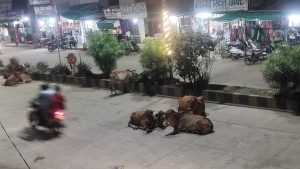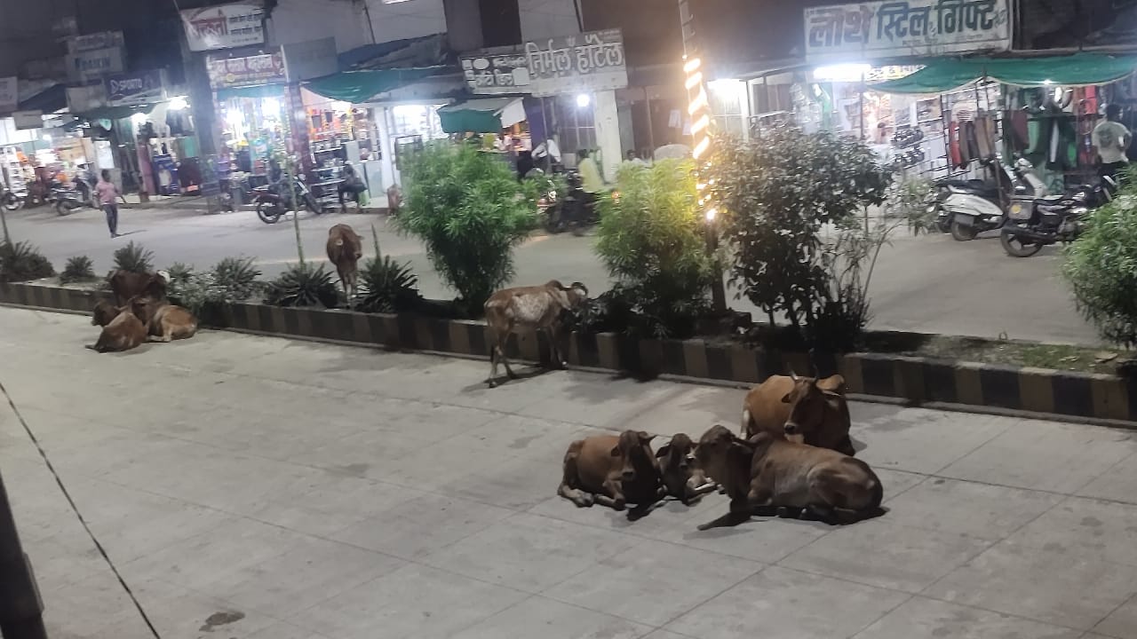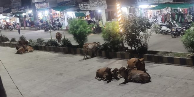 मुख्य रस्त्याच्या मधोमध बसली असतात मोकाट जनावरे