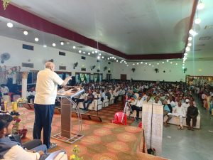 याप्रसंगी विशेष अतिथी, प्रसिध्द विचारवंत दशरथ मडावी म्हणाले की, राज्यघटनेची उद्धेशपत्रिकेत देशाचे मानव जातीच्या कल्याणाचा विचार आहे. पण वर्तमानात सरकारने महाराष्ट्रातील सर्व आय. टी.आय. च्या दर्शनी भागात “संविधान मंदिराचा” उदघाटन सोहळा पार पडला.संविधान मंदिर असा उल्लेख करणे म्हणजे मनुवादी विचार सरणी त्यात दिसून येते.हिंदू – मुस्लिम वाद निर्माण करून जातीय तेड वाढविण्याचे काम सरकार करीत आहे,तेव्हा आपण सावध असणे गरजेचेअसल्याचे प्रतिपादन केले.