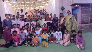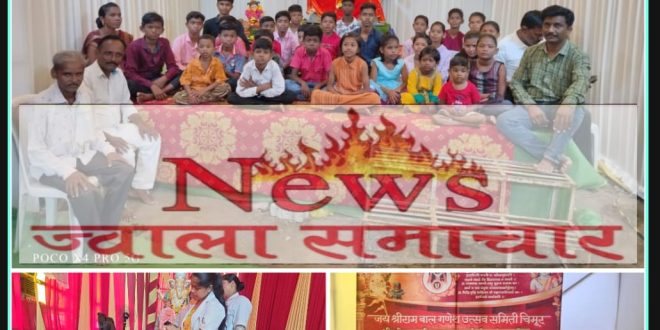 वैराग्यमूर्ती गाडगे बाबा यांचे विचार या मंडळाच्या पदाधीकऱ्यानी अंगीकरल्याने नेहमी विविध सामाजिक उपक्रम राबविल्या जातात. दिनांक 21 सप्टेंबर रोजी गणेश मूर्तीची स्थापना असल्याने गणेश मूर्ती बंडी बैल सज्ऊन अगदी साध्या पद्धतीने मूर्ती मंडपात आणण्यात आली. मूर्तीची विधिवत पूजा राष्ट्रसंत तुकडोजी महाराज मुक बधीर विद्यालयातील विद्यार्थ्यांच्या हस्ते करून गणेश मूर्तीची प्रतिष्ठापना व आरती त्यांच्या हस्ते करण्यात आली. आरती नंतर विद्यार्थ्यांना भोजन दान करून त्यांना भेट वस्तू देण्यात आल्या. यावेळी राष्ट्रसंत तुकडोजी महाराज मुक बधीर विद्यालयाचे मुख्याध्यापक रामदास कामडी. सहित सर्व कर्मचारी व जय श्री राम बाल गणेश मंडळ टिळक वॉर्ड चिमूर येथील सर्व पदाधिकारी व कार्यकर्ते उपस्थित होते.