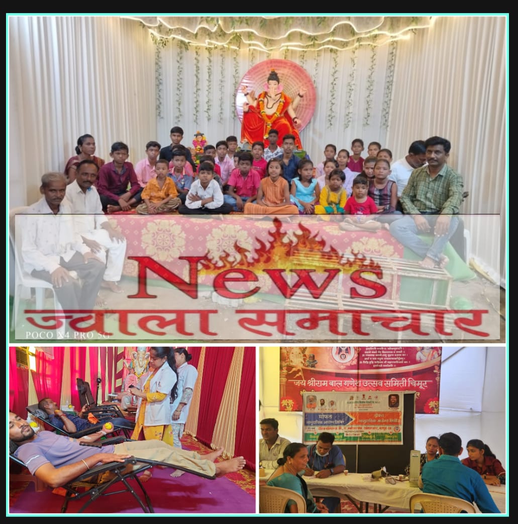 चिमूर शहरातील चिमूरचां राजा जय श्रीराम बाल गणेश उत्सव समिती टिळक वॉर्डच्या वतीने आरोग्य तपासणी शिबीर व रक्तदान शिबिर आयोजित करण्यात आले होते. जय श्रीराम बाल गणेश उत्सव समिती टिळक वॉर्ड चिमूरच्या वतीने दरवर्षी प्रमाणे या वर्षी मस्करया गणेश मूर्तीची प्रतिष्ठापना करण्यात आली. उत्सव समितीच्या वतीने दरवर्षी सामाजिक उपक्रम राबविल्या जातात.नवसाला पावणारा गणपती बाप्पा अशी ओळख या गणेश मूर्तीची आहे. यावर्षी सुधा आरोग्य तपासणी शिबीर आयोजित करण्यात आले होते या शिबिरात शंभर पेक्षा जास्त रुग्णांनी तपासणी करून घेतली.