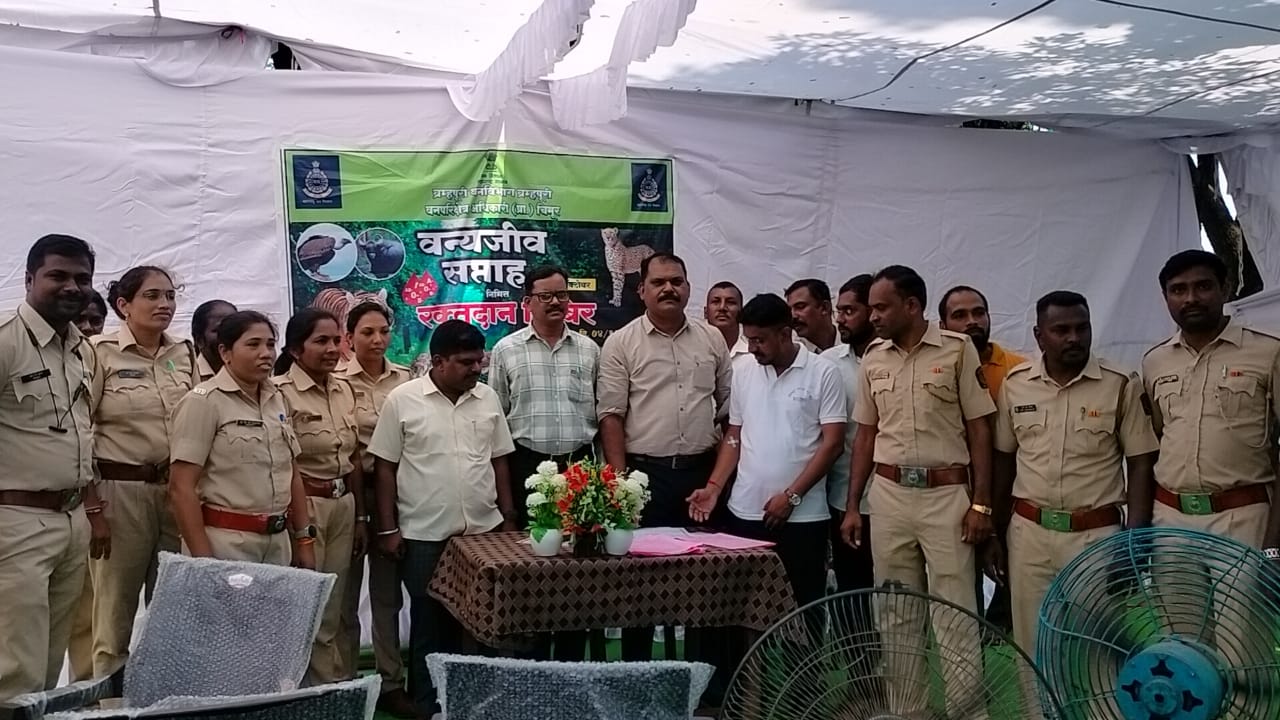 वन्यजीव सप्ताह 01 ते 07 ऑक्टोबर या कालावधीत साजरा करण्यात येतो.दिनांक 04 ऑक्टोबर 2024 रोजी रक्तदान शिबीराचे वनपरिक्षेत्र कार्यालयच्या प्रांगणात आयोजन करण्यात आले. याप्रसंगी परिक्षेत्रातील वनकर्मचारी,JFM सदस्य, PRT सदस्य,टायगर ग्रुप तसेच चिमूर क्रांती बहुउद्देशिय फांडेशन यांनी उस्फुर्तपणे रक्तदान शिबीरास येवून रक्तदान करुन आपल्या सामाजीक दायीत्वाचे पालन केले.